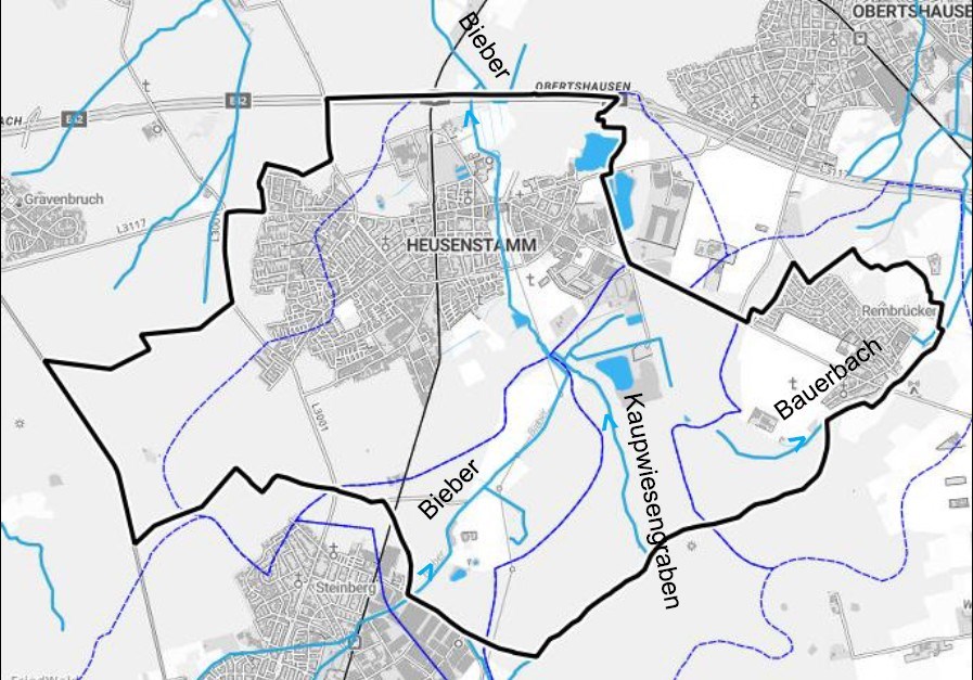 Heusenstamm: Gewässernetz und Gewässer-Einzugsgebiete (Hessisches Landesamt für Naturschutz, Umwelt und Geologie)