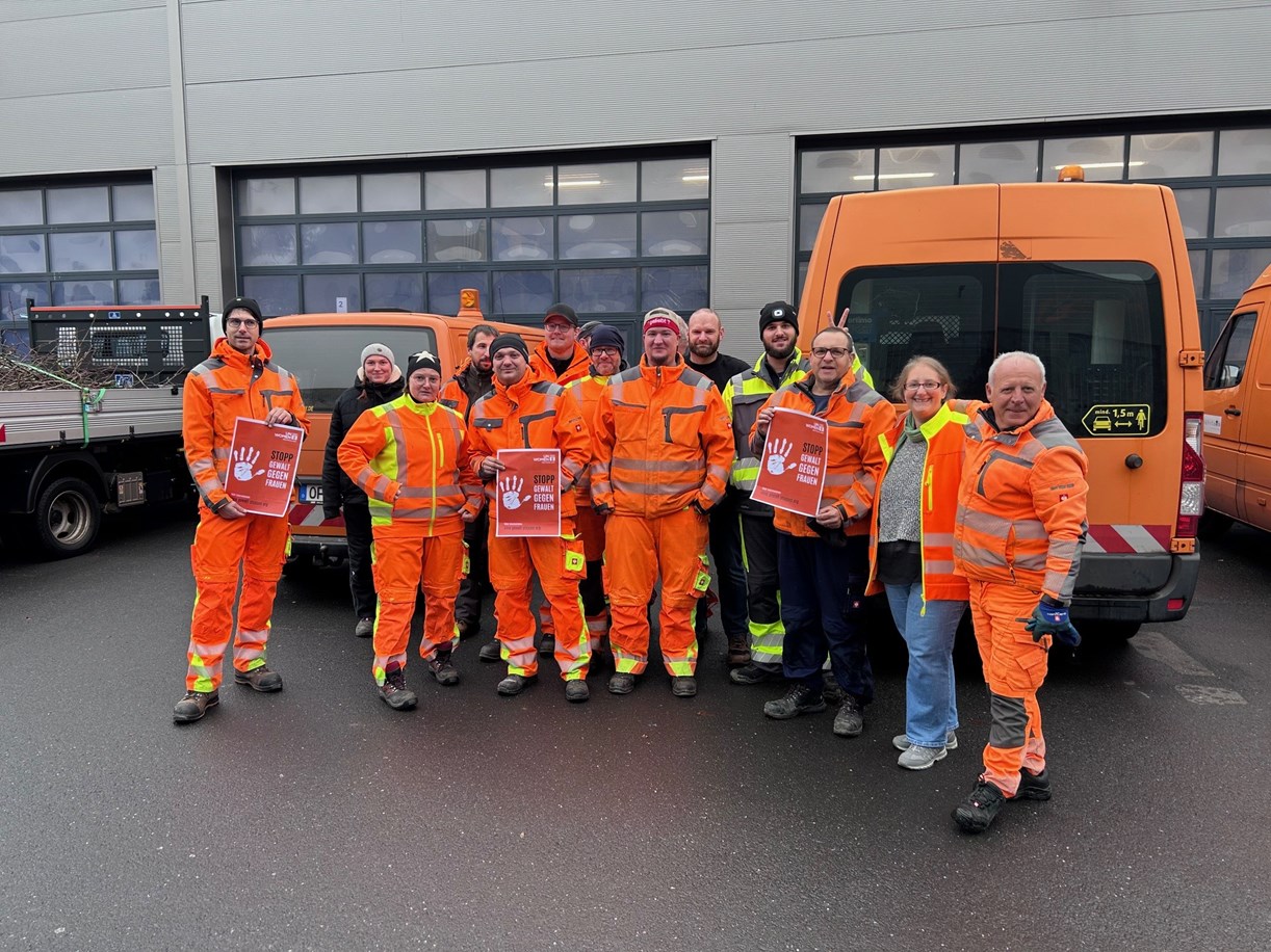 Wir zeigen Haltung: Mitarbeitende aus dem Rathaus unterstützen die UN-Kampagne „Orange the World“ ...