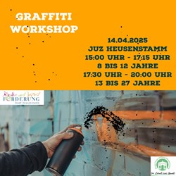 Wie bereits angekündigt, können Kinder und Jugendliche mit dem Graffiti-Workshop während des Osterferienprogramms am Montag, 14. April, im Innenhof des Jugendzentrums in der Rembrücker Straße 3 kreativ werden. Der Frankfurter Künstler Philipp Wegener zeigt den Teilnehmenden Grundtechniken im Umgang mit der Sprühdose. Ziel des Workshops ist es, den Kindern und Jugendlichen einen sinnvollen und legalen Umgang mit dieser Kunstform zu vermitteln.