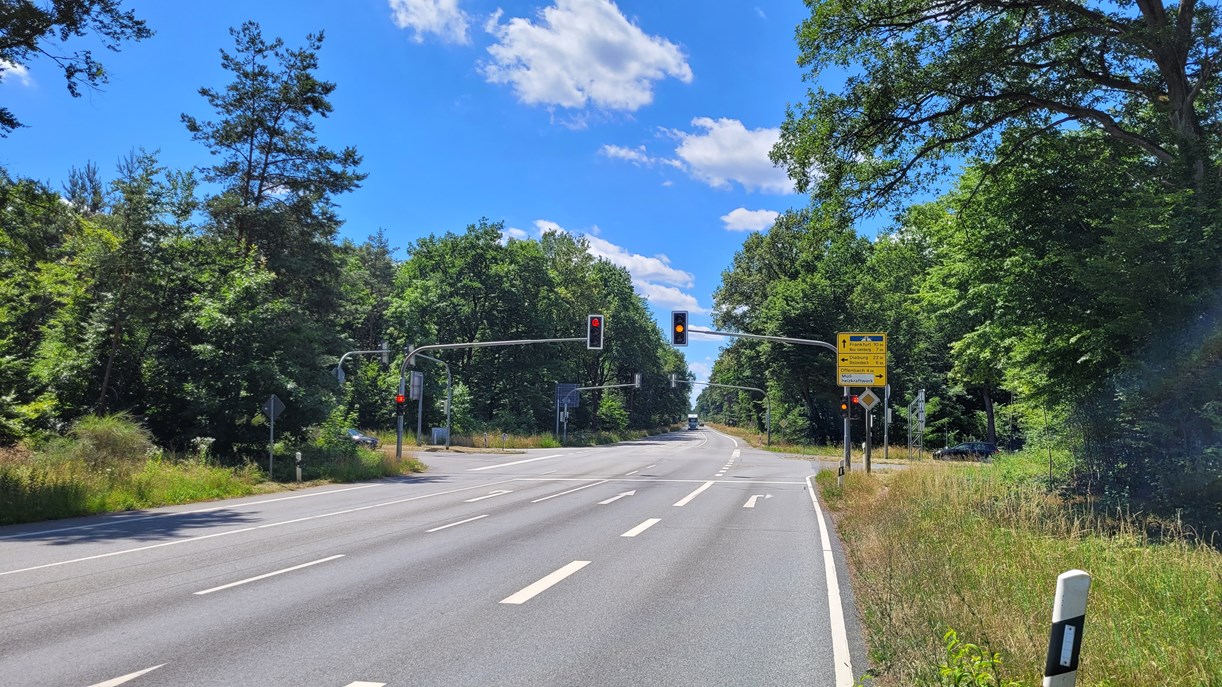 Die L 3117 zwischen Heusenstamm und Gravenbruch an der Wildhof-Kreuzung.