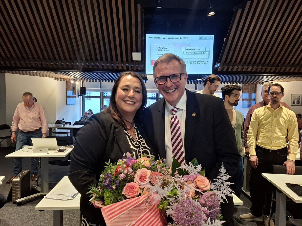 Mit großer Mehrheit wählten die Stadtverordneten Heide Schwab (CDU) zur neuen Stadtverordnetenvorsteherin. Sie übernimmt damit das höchste Repräsentationsamt der Stadt. In dieser Funktion leitet sie die Sitzungen der Stadtverordnetenversammlung, bereitet dieses organisatorisch vor und sorgt für einen ordnungsgemäßen Ablauf.