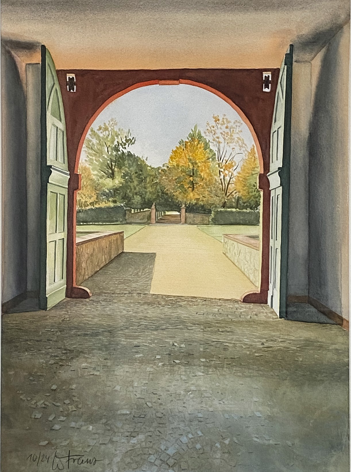 Eines der Werke von Wolfgang Franz (es zeigt den Schlosseingang).