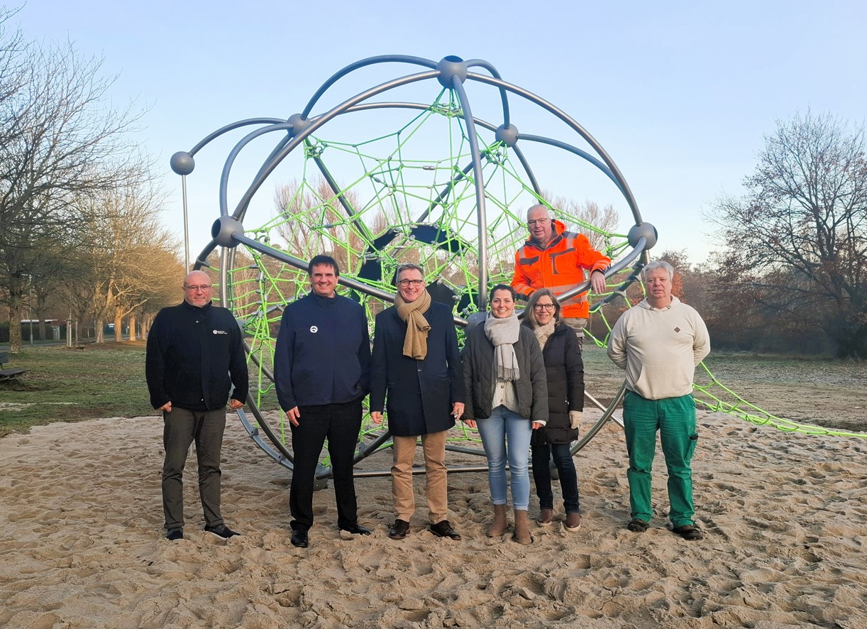 Der Spielplatz Schlosswiese bietet Kindern ab sofort wieder ein attraktives und modernes Spielangebot: Mit dem neuen Spielgerät Cosmo wurde ein zeitgemäßes Seil- und Klettergerät aufgebaut und nun offiziell freigegeben.