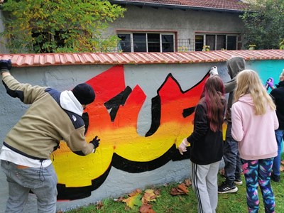 Die Kinder und Jugendlichen im Alter zwischen 11 und 21 Jahren sind sich schnell einig, dass die Einrichtung allen friedlich gesinnten jungen Menschen offensteht, gleich welcher Hautfarbe, Religion oder sexuellen Orientierung. Das Projekt unter dem Titel "Rassismus und Vielfalt" war bereits für 2020 geplant - wegen der Pandemie hatte es verschoben werden müssen. Jetzt läuft die Aktion, unterstützt von der Initiative des Bundes-Familienministeriums, "Demokratie leben". In drei Tagen verbrauchen die Teams fast 150 Spraydosen, lernen, welche Aufsätze einen dünnen oder einen dickeren Strahl erzeugen, wie die Farbe transparent erscheint oder kunstvoll verschwimmt oder wie man die Dosen am besten hält und bewegt. Zum Schutz vor der Chemie tragen alle Aktiven Plastikhandschuhe und Masken. Letztere sind sie ohnehin längst gewöhnt,sagt Jahn Scheel, Leiter der Kinder- und Jugendförderung. Und während Sara und Genevieve Technik und Themen vermitteln, stellt Jahn mit drei Mitarbeitern sicher, dass mittags Pizza geliefert wird, dass nebenbei Tischkicker, Billard und Gesellschaftspiele genutzt werden können.